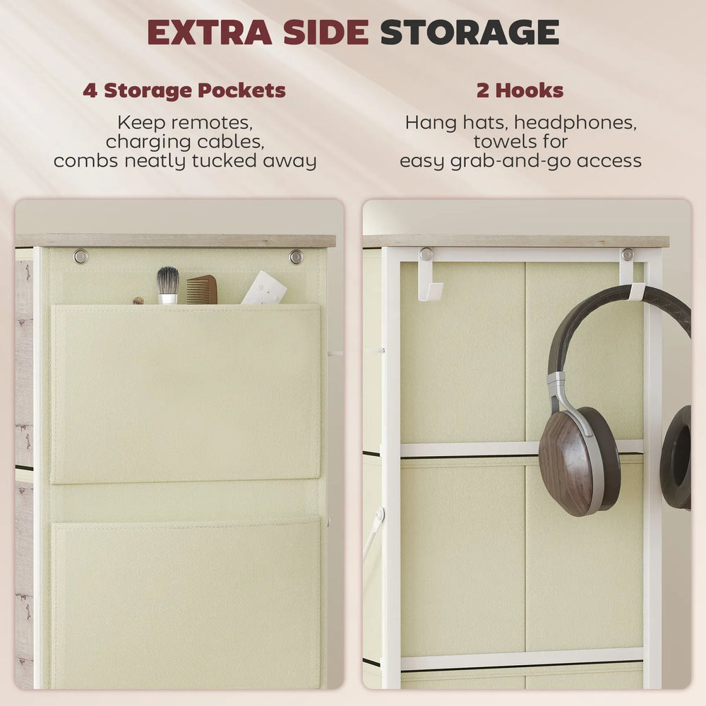 - Four pockets and two hooks: Extra storage on this fabric dresser - great for holding small accessories like hats, jewellery, keys, headphones and similar