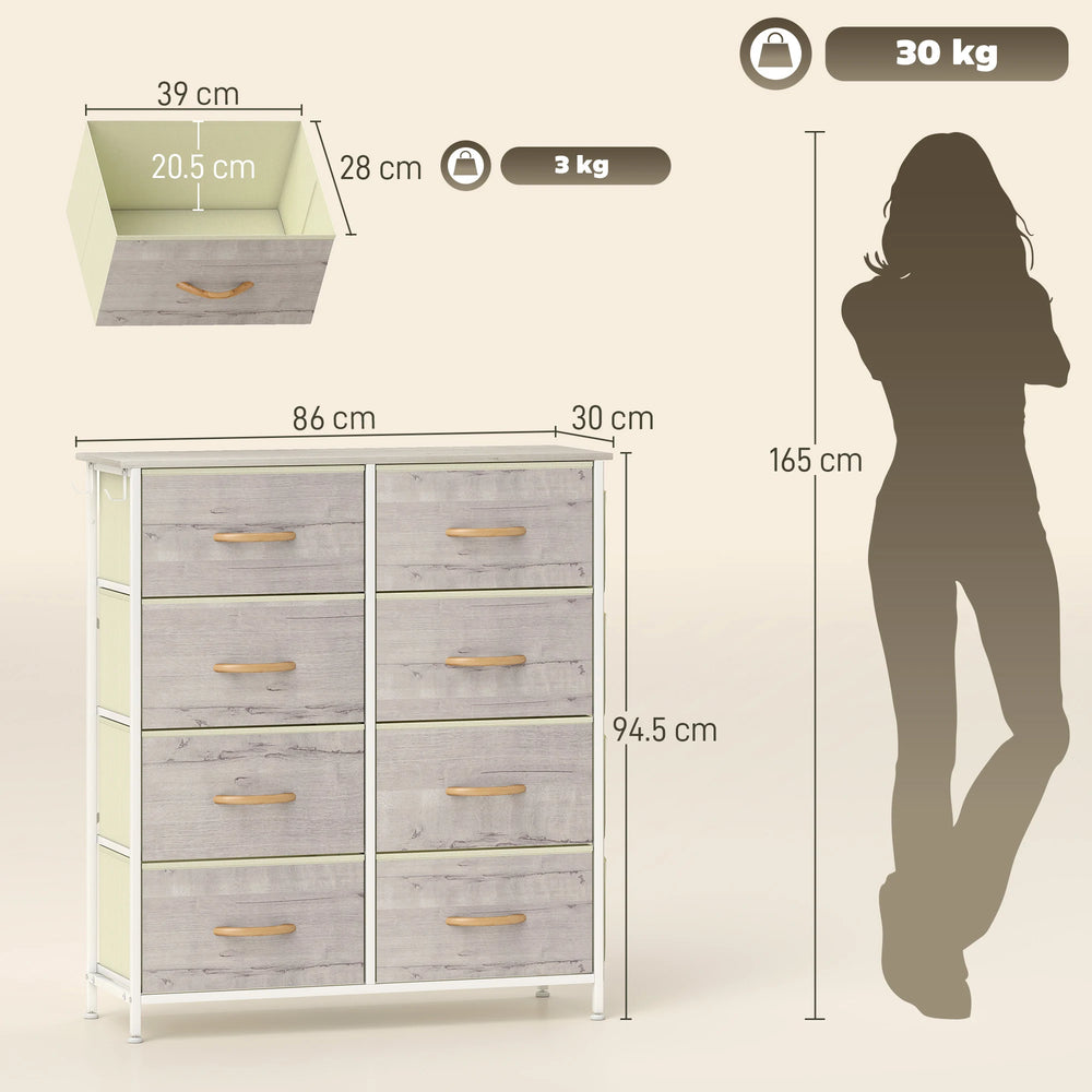 HOMCOM Chest of Eight Fabric Drawers - Natural Wood Finish