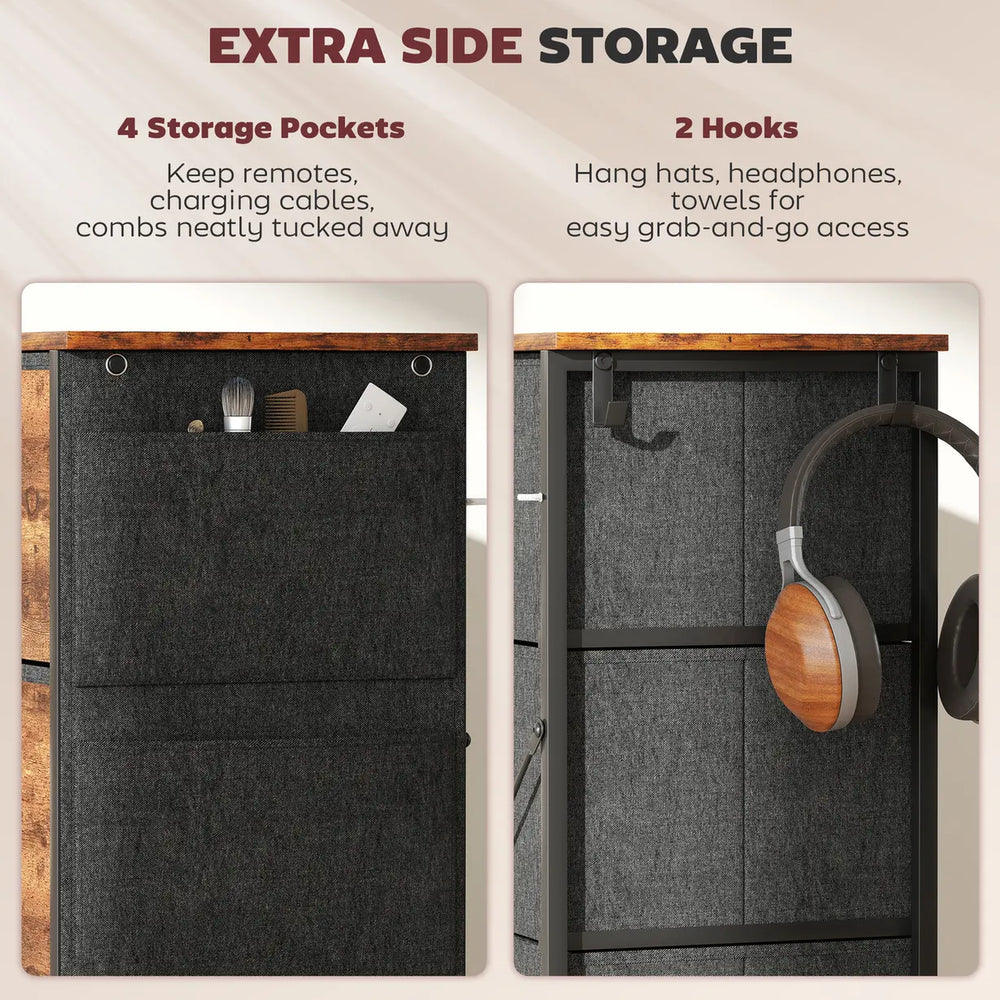 - Four pockets and two hooks: Extra storage on this fabric dresser - great for holding small accessories like hats, jewellery, keys, headphones and similar