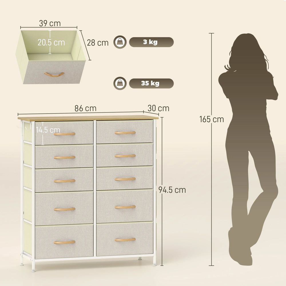 HOMCOM Chest of Ten Fabric Drawers - Beige
