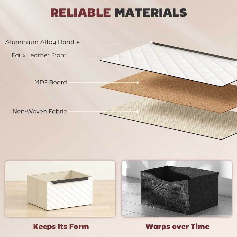 - Chic accent: Give your room an instant style boost! With diamond-patterned faux leather drawer fronts, wood-effect frame and sleek black handles, this fabric dresser creates a modern look and lived-in feel your home will adore