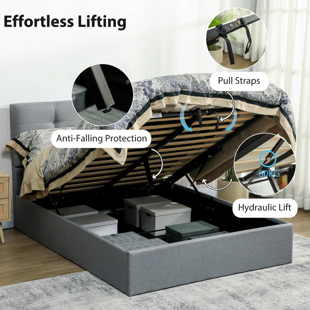 HOMCOM 4ft6 Double Ottoman Bed with Gas Lift Storage - Grey