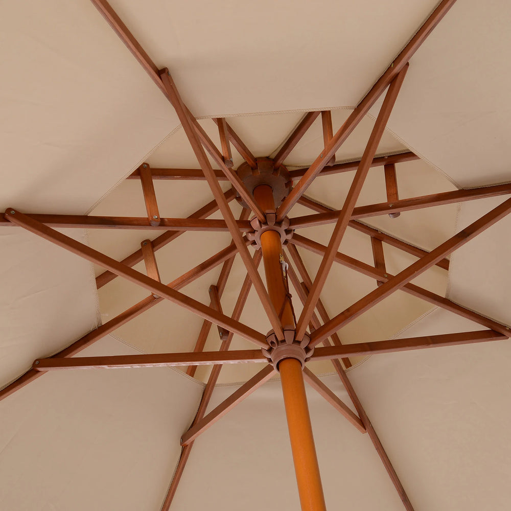 Outsunny 2.7m Wooden Parasol Elegant Two-Tier Design Garden Parasol Umbralle for Outdoor Shade, Beige