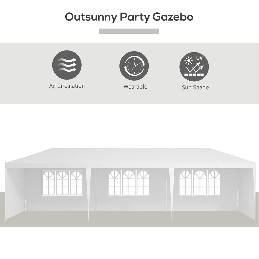 Outsunny Garden Gazebo 9 x 3 Marquee Party Wedding Tent Canopy, White