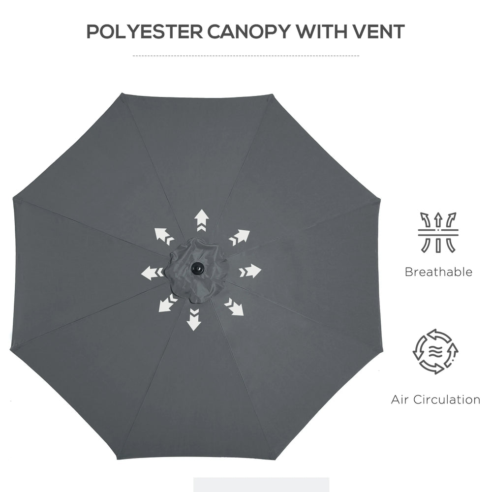Outsunny 3(m) Tilting Parasol Garden Umbrellas, Outdoor Sun Shade with 8 Ribs, Tilt and Crank Handle for Balcony, Bench, Garden, Dark Grey