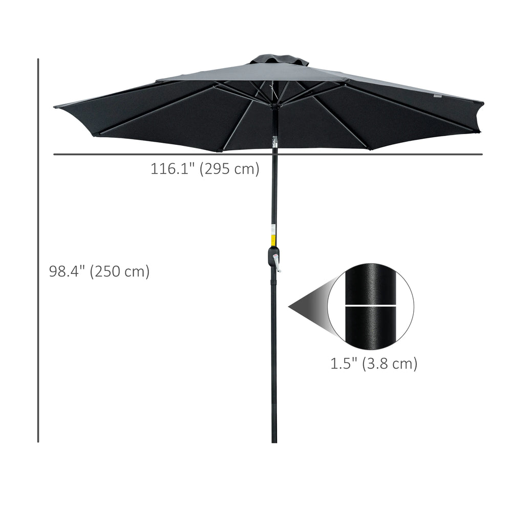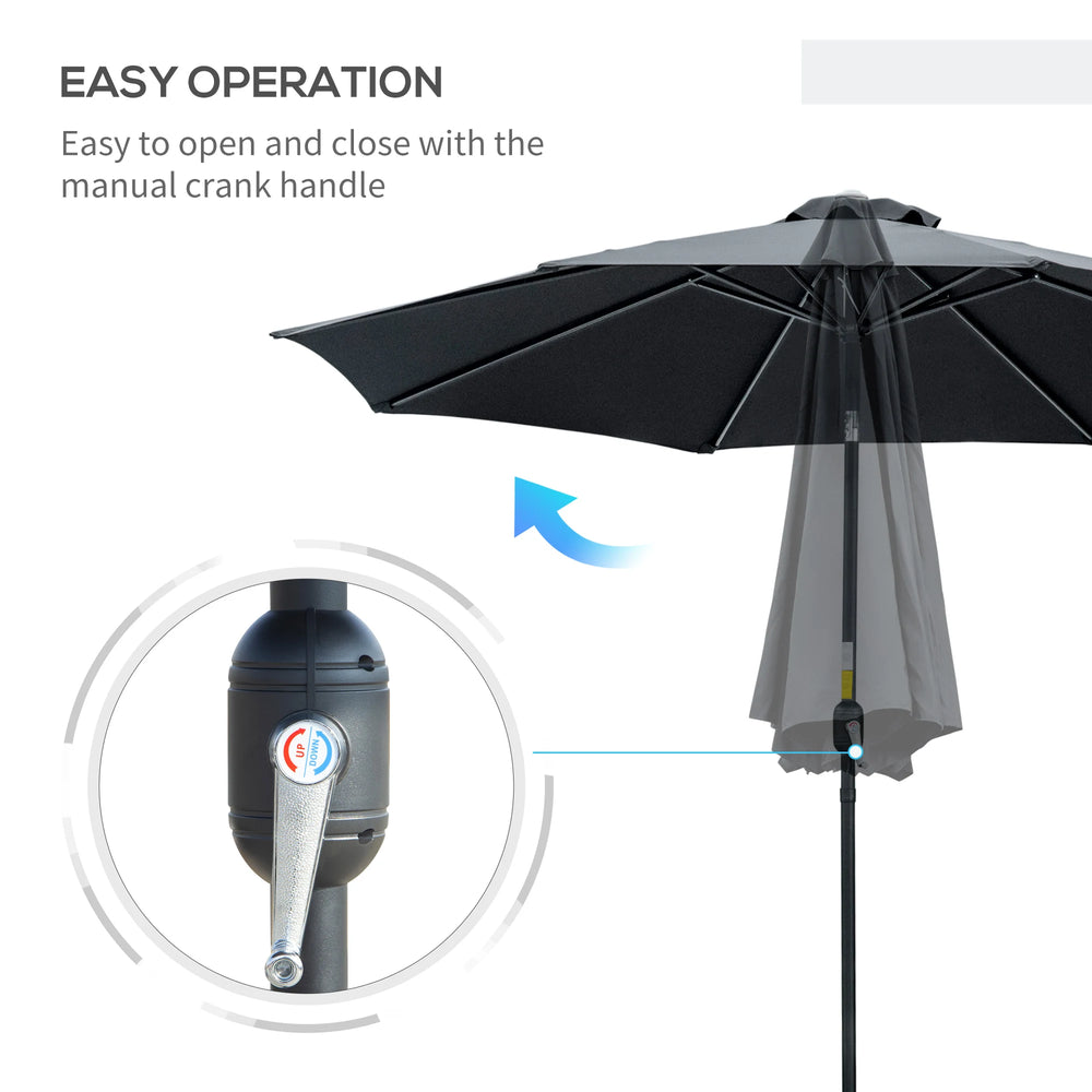 Outsunny 3(m) Tilting Parasol Garden Umbrellas, Outdoor Sun Shade with 8 Ribs, Tilt and Crank Handle for Balcony, Bench, Garden, Black