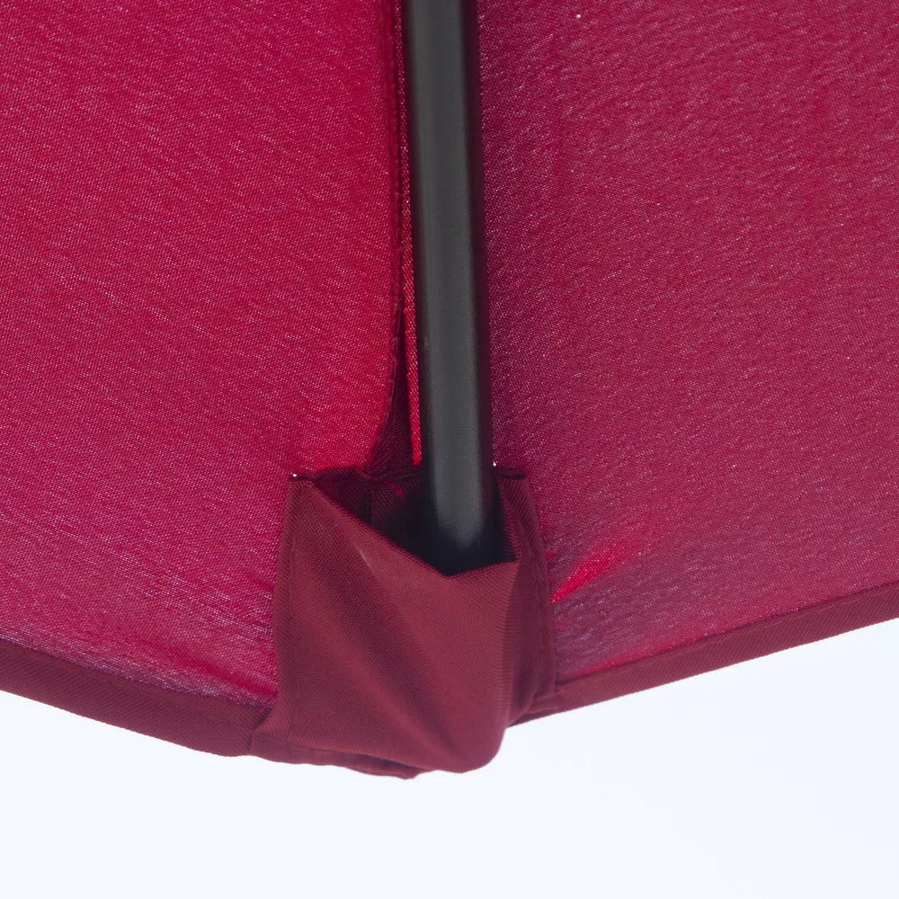 Enhance your garden gatherings with the exquisite burgundy Outsunny parasol. This elegant sunshade provides a cool haven for family and guests, effortlessly blending with your garden's aesthetic. Its durable steel pole and eight-rib structure ensure stability against varying weather conditions. The adjustable-angle canopy offers optimal sun protection, while the crank handle allows for easy operation. With screwdriver, it is simple to assemble.