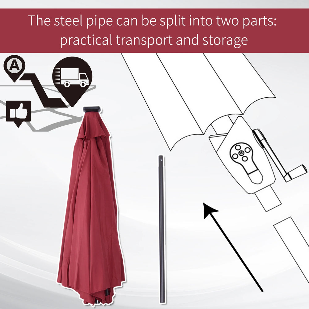 Outsunny 2.7m Garden 24 LED Light Parasol Solar Outdoor Tilt Sun Umbrella Patio Club Party Event Manual Sun Shade w/ Hand Crank and 8 Ribs, Red