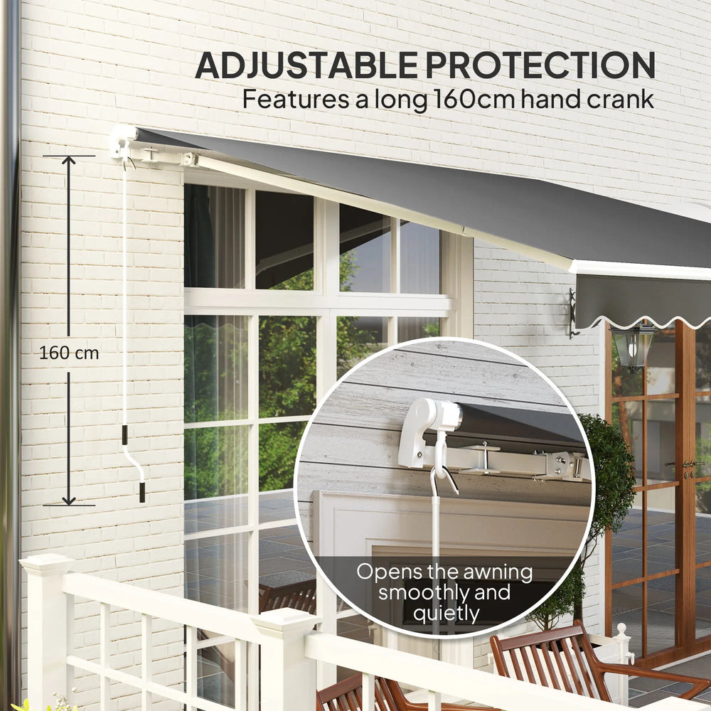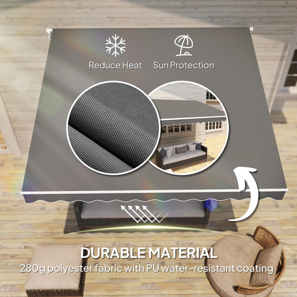 Outsunny 3 x 2.5m Garden Patio Manual Awning, Retractable Canopy Sun Shade Shelter with Fittings and Crank Handle, Dark Grey
