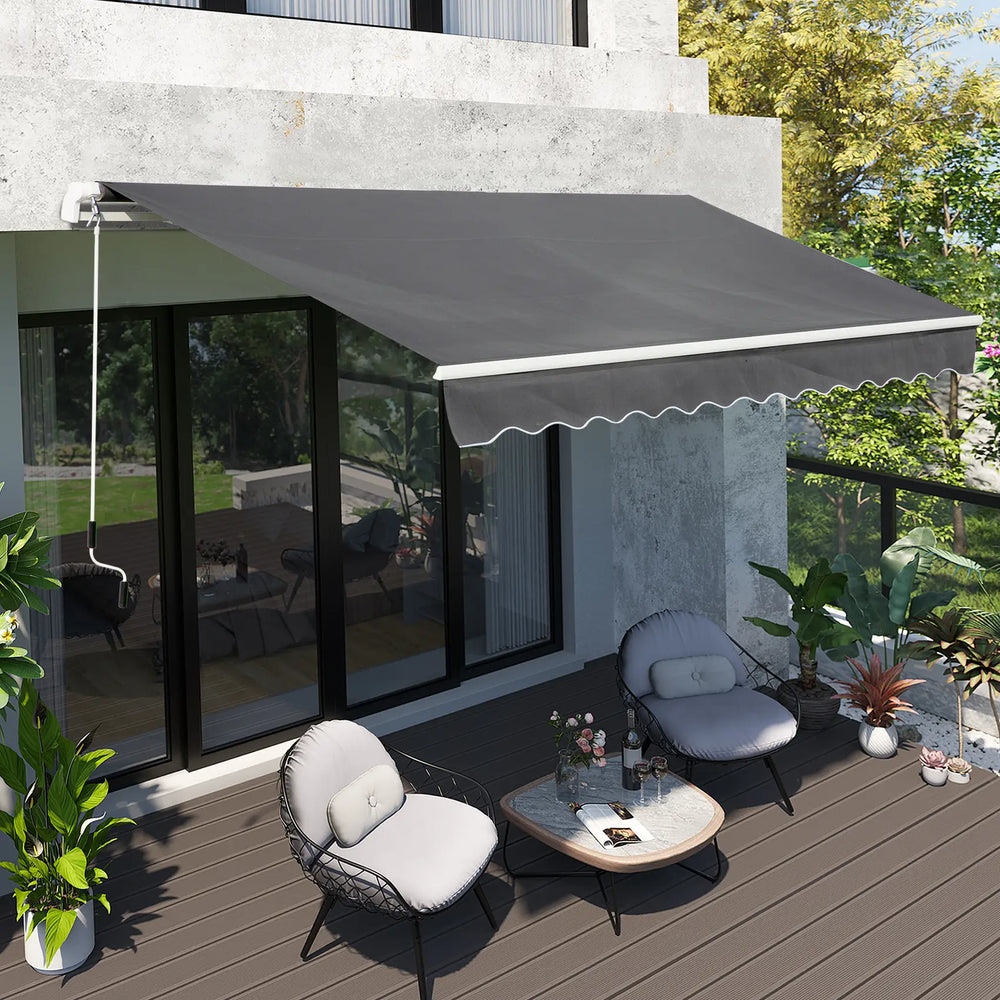 Outsunny 4x2.5m Manual Awning Window Door Sun Weather Shade w/ Handle Grey