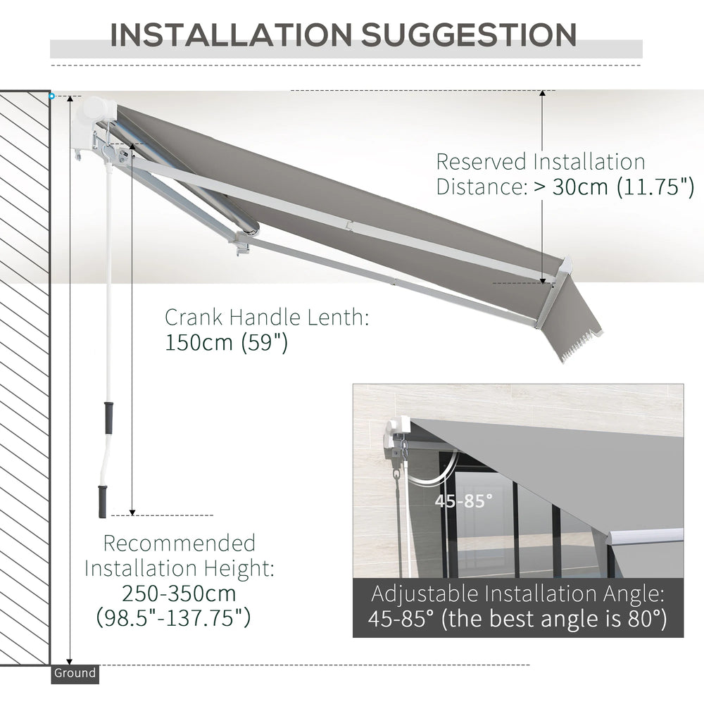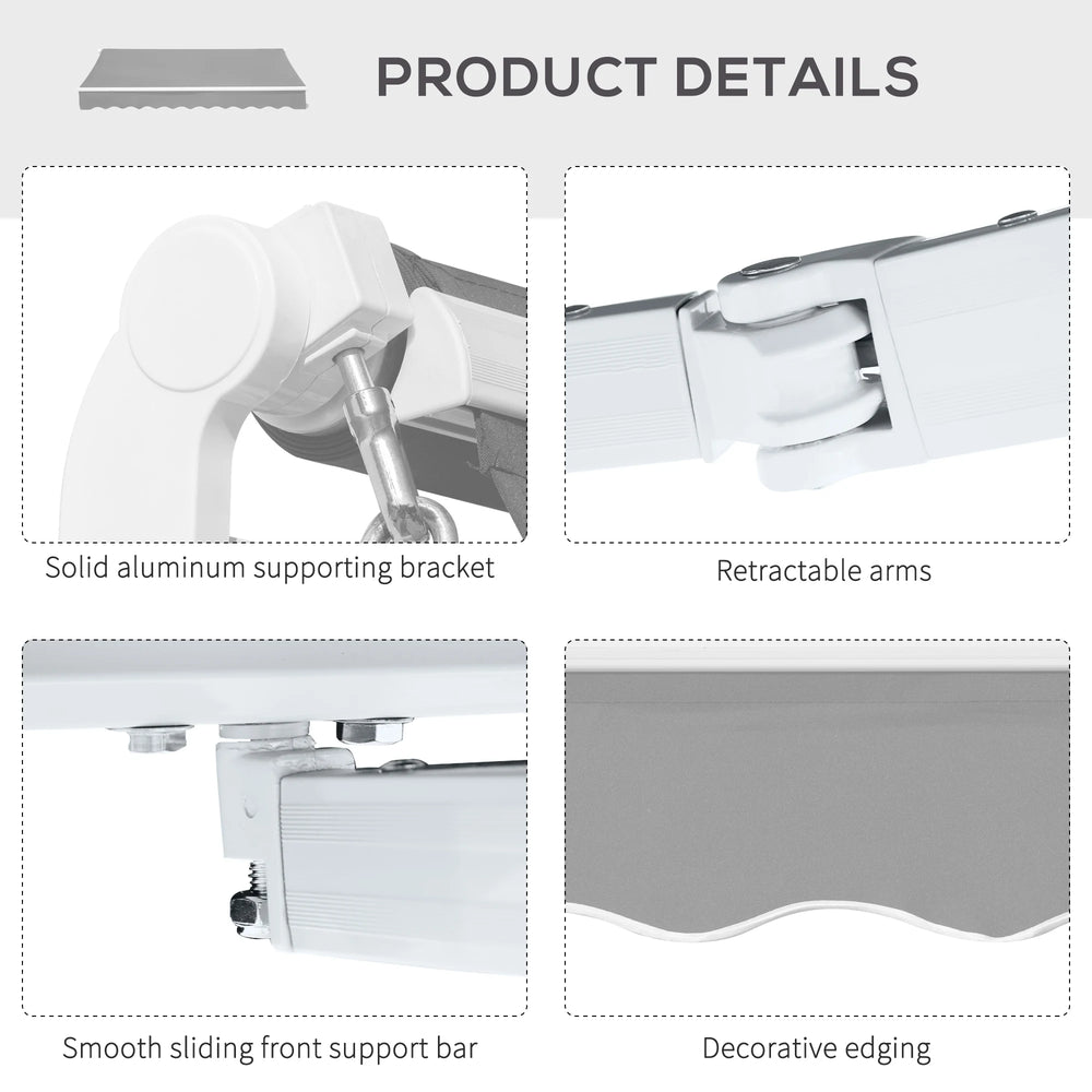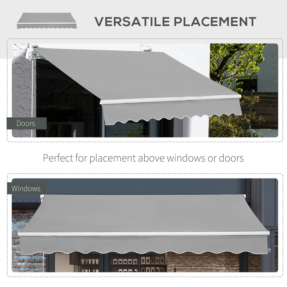 With a thick sun-shielding canopy fixed on an aluminium frame, this 4 x 2.5m awning from Outsunny will give you all the shade you need this season. The manual design means you can set it up wherever needed - whether it's above a door or window, and it easily mounts onto your chosen surface with all accessories included in the package. Finished with a crank handle for easy operation. It's time to enjoy the beauty of the Summer more than ever before.