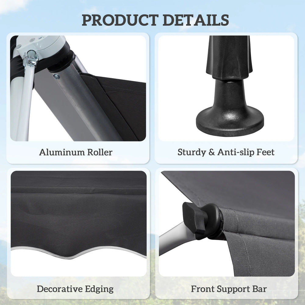 Bring shelter into your outdoor garden space when needed with awning from Outsunny. Easy to set up to save you time and effort, its ceiling-to-ground design makes it more stable and secure as opposed to a ceiling only awning, with the powder coated aluminium frame ensuring it is tough and durable for long-term use in your home. Manually operated via the crank handle, the canopy angle can be adjusted between 0 90 degrees, with the height ranging from 1.7 to 2.8m, allowing you to easily set it to a position which suits you, with the weather-resistant canopy shielding you from UV rays, the sun glare and light wind. The best way to enjoy your garden even more all-year round.