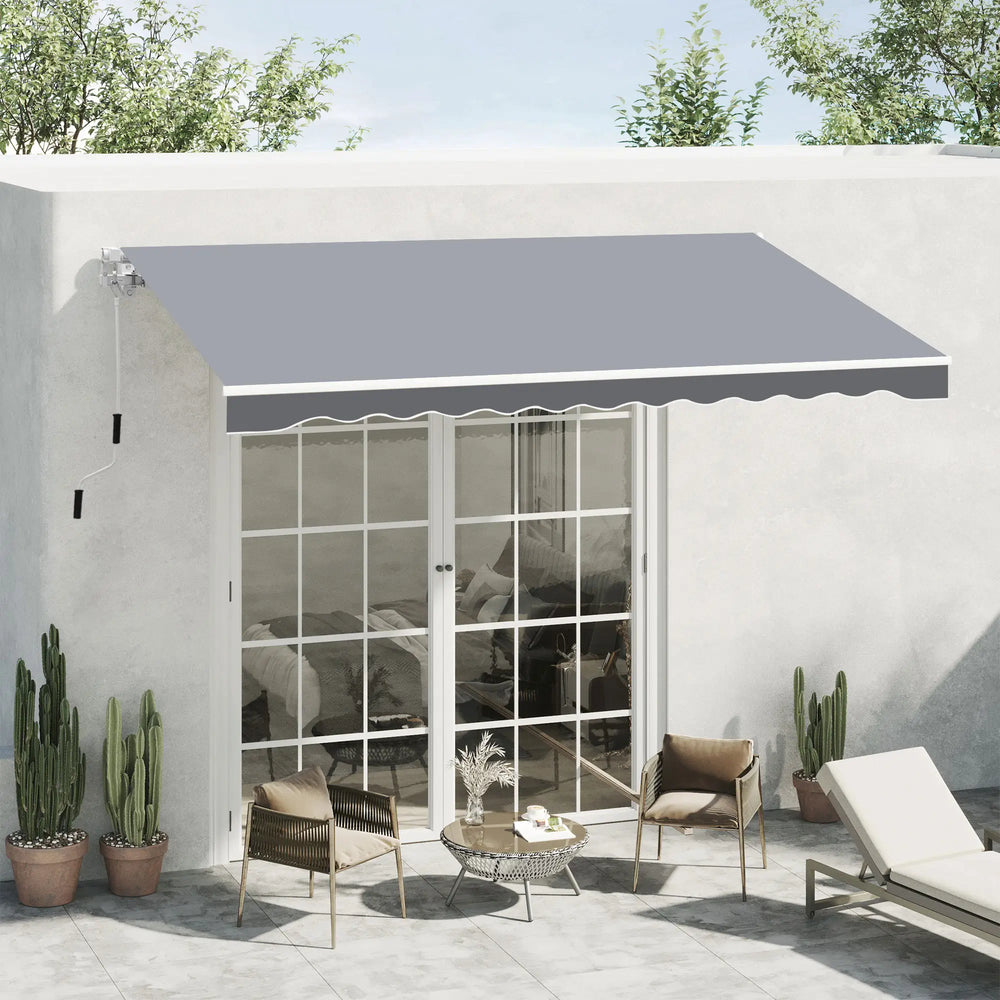 With a sturdy aluminum and steel blend frame, this Outsunny sun canopy awning is ideal for creating shade when needed. The thick 280gsm polyester canopy will protect you from any excessive heat and sunlight to keep you cool and comfortable. It can be easily mounted on the wall with the included accessories. The garden canopy retractable operation means you can open and close it whenever - a fuss-free way to extend your time in the Summer safely and comfortably.