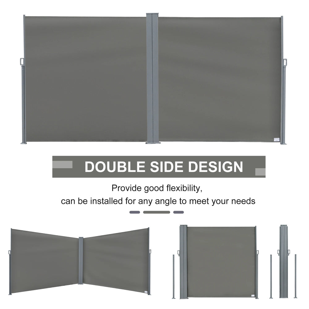 Outsunny 6 x 2m Retractable Sun Side Awning Screen Fence Patio Garden Wall Balcony Screening Panel Outdoor Blind Privacy Divider Grey