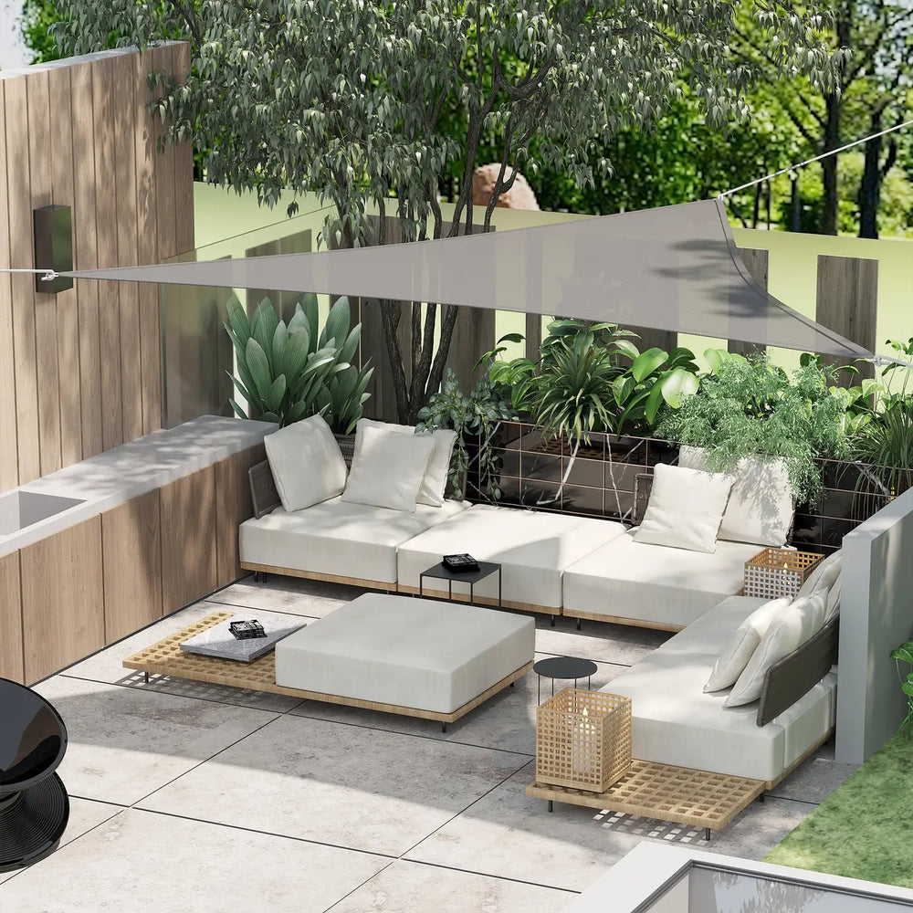 Outsunny 4x4x4m Triangle Sun Shade Sail, Outdoor UV Protection HDPE Canopy, Patio Deck Shelter with Steel Rings and Ropes, Grey is backordered and will ship as soon as it is back in stock.