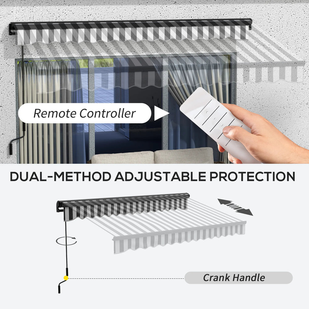 Outsunny 2.5 x 3.5m Aluminium Frame Electric Awning, with Remote - Grey/White