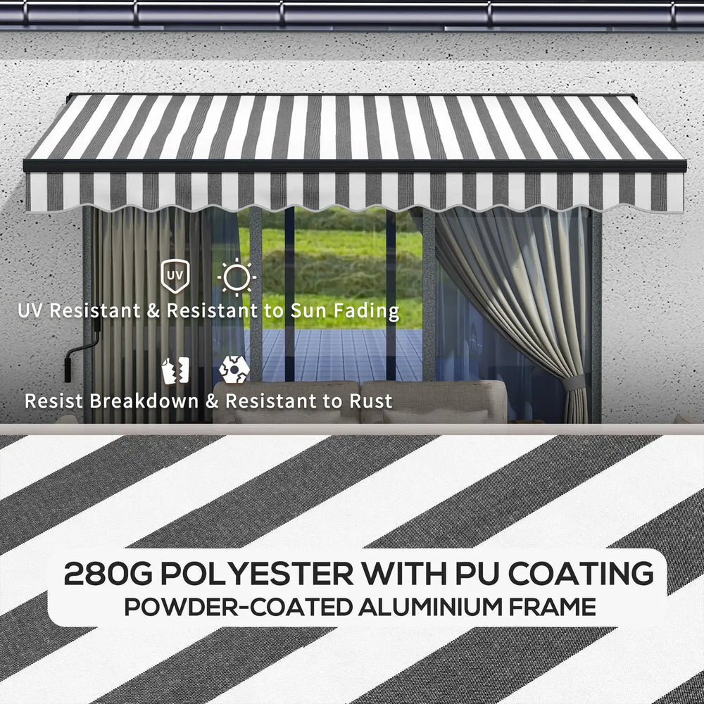 Provide cover for yourself outdoors instantly, with no fuss. Do it with this Outsunny retractable door awning. The frame is made from an aluminium and metal blend - a tough core. The 280g/m2 canopy is PU coated to shelter against sun glare, UV rays and mild weather. Use the included mounting hardware; you can install this outdoor garden awning on a concrete, solid brick wall and even on a wooden fence, any door, balcony patio or window.