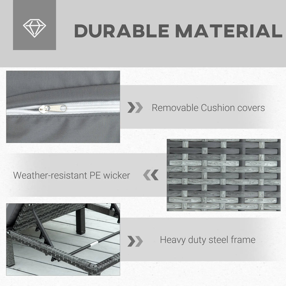 Outsunny Rattan Sun Lounger, 5-Level Adjustable Garden Lounger Recliner with Cushion and Headrest, Outdoor Reclining Sunbed, Steel Frame Garden Chair for Patio, Beach, Terrace, Dark Grey