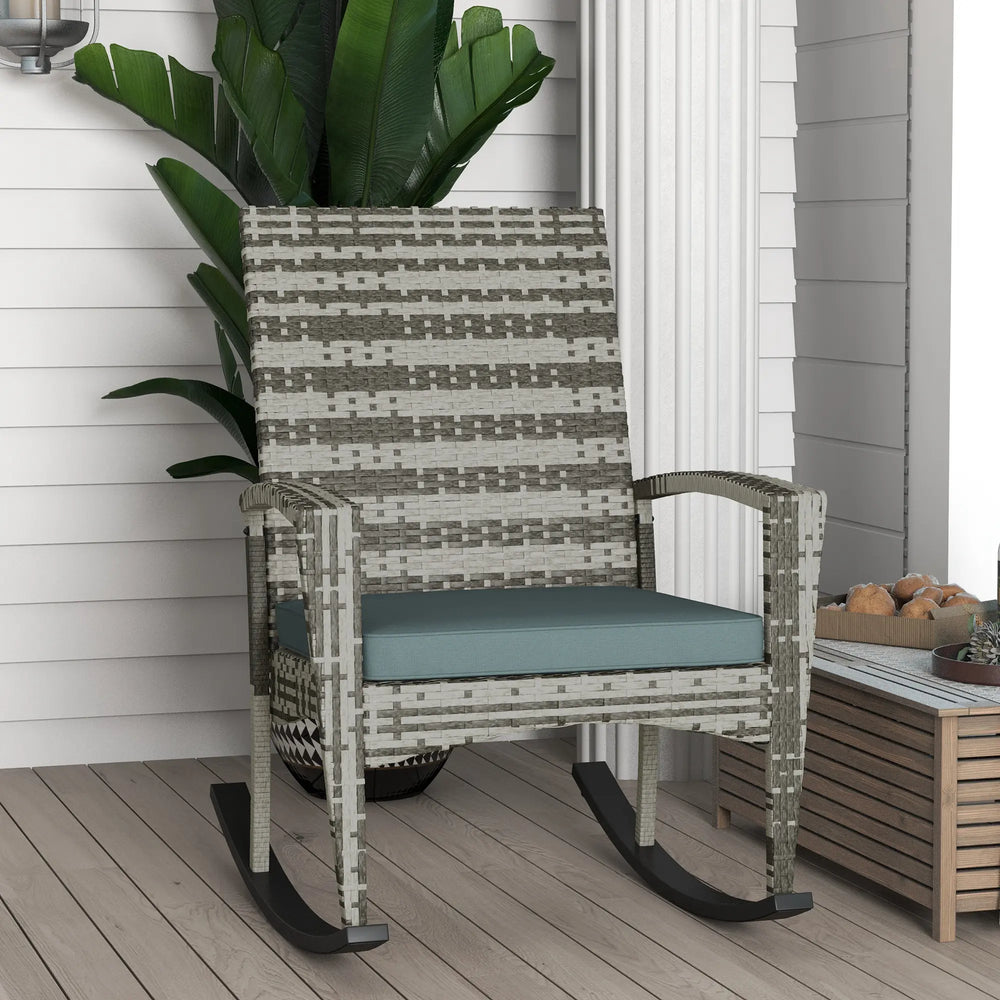 Outsunny PE Rattan Garden Rocking Chair, Outdoor Rocking with Cushion, 160 KG Capacity Wicker Garden Armchair Rocker with Metal Frame for Patio, Porch, Balcony, Light Grey