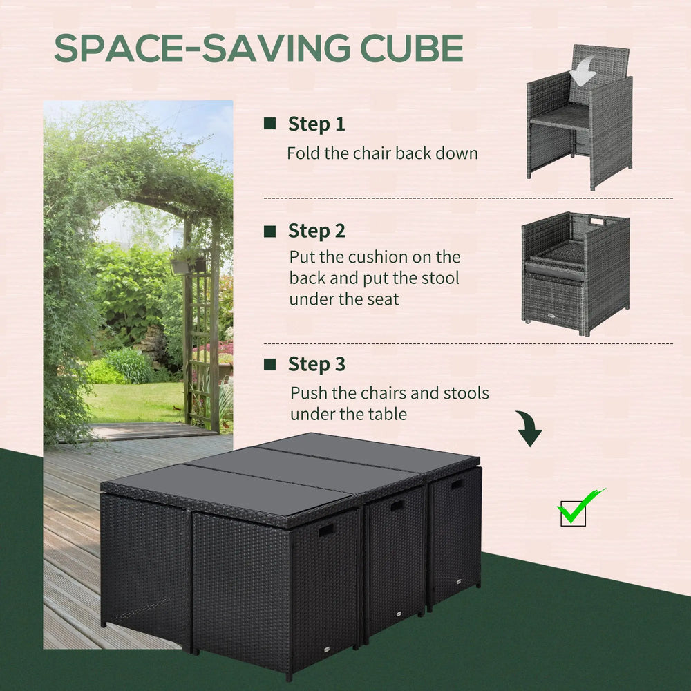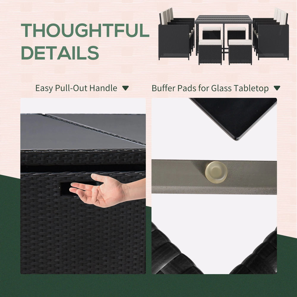 Outsunny Rattan Dining Set Garden Furniture Patio set 11 PC with Cushion Black /Milk White