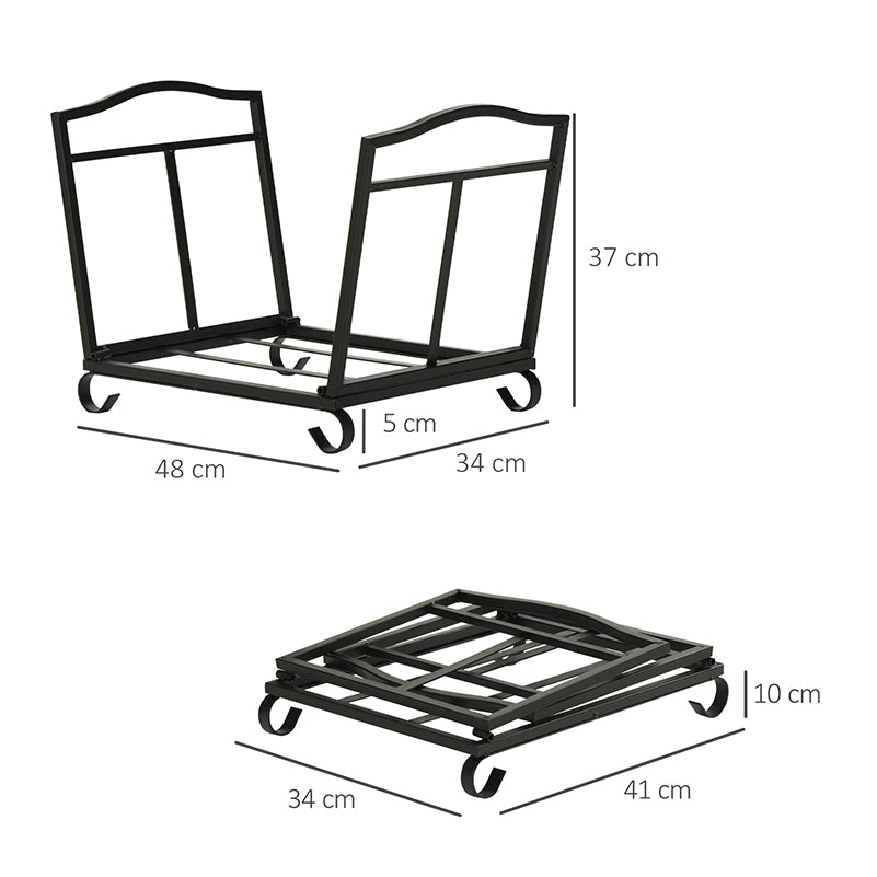 Outsunny Metal Firewood Log Holder Indoor Outdoor Folding Firewood Rack Fireplace Wood Storage Shelf w/ Scrolls, Rust-Resistant, Black, 48L x 34W x 37Hcm is backordered and will ship as soon as it is back in stock.