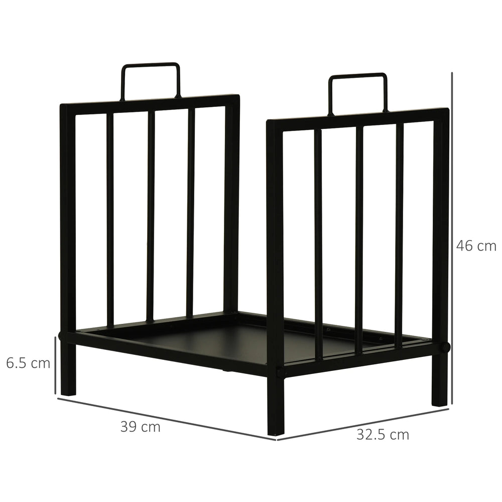 Outsunny Metal Firewood Log Holder Indoor Outdoor Firewood Rack Fireplace Wood Storage Shelf w/ Handles, Rust-Resistant, Black, 39L x 32.5W x 46Hcm