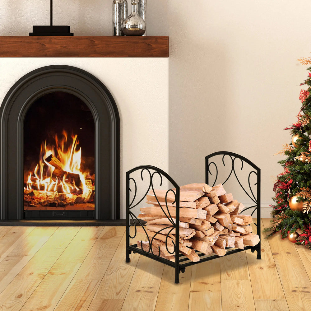 Outsunny Metal Firewood Log Holder Indoor Outdoor Firewood Rack Fireplace Wood Storage Shelf w/ Elegant Scrolls, Rust-Resistant, Black, 39.5L x 31.5W x 39.5H cm is backordered and will ship as soon as it is back in stock.