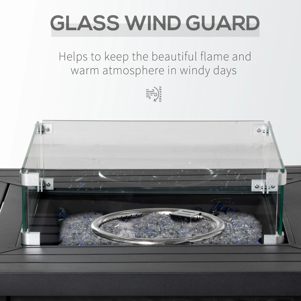 Outsunny Square Propane Gas Fire Pit Table, 50000 BTU Rattan Smokeless Firepit Patio Heater with Glass Screen, Glass Beads and Lid, 81cm x 81cm x 64cm, Black