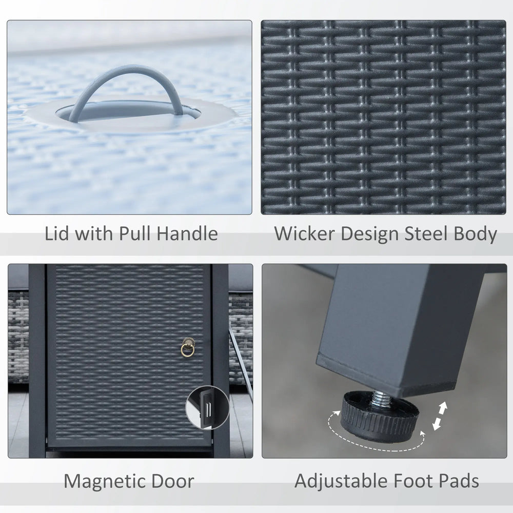 Enjoy garden warmth and ambiance all year-round with this Outsunny fire pit table. The rattan-effect design is stylish, looks great matched with other furniture. The tabletop is fitted with a centre fire pit - the 40,000 BTU burner is powerful and produces a clean smokeless burn. The flame can be adjusted too. The thermocouple closes the valve if the flame goes out for safety - no leaking gas. Lid included to turn into a standard table when needed.