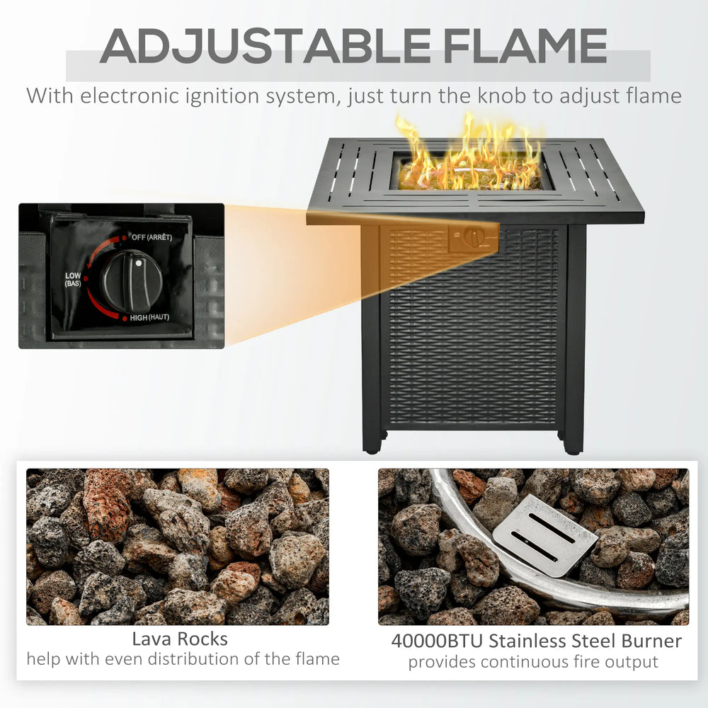 Outsunny Square Propane Gas Fire Pit Table, 40000 BTU Rattan Smokeless Firepit Patio Heater with Protective Cover, Lava Rocks and Lid, 71cm x 71cm x 62cm, Black is backordered and will ship as soon as it is back in stock.