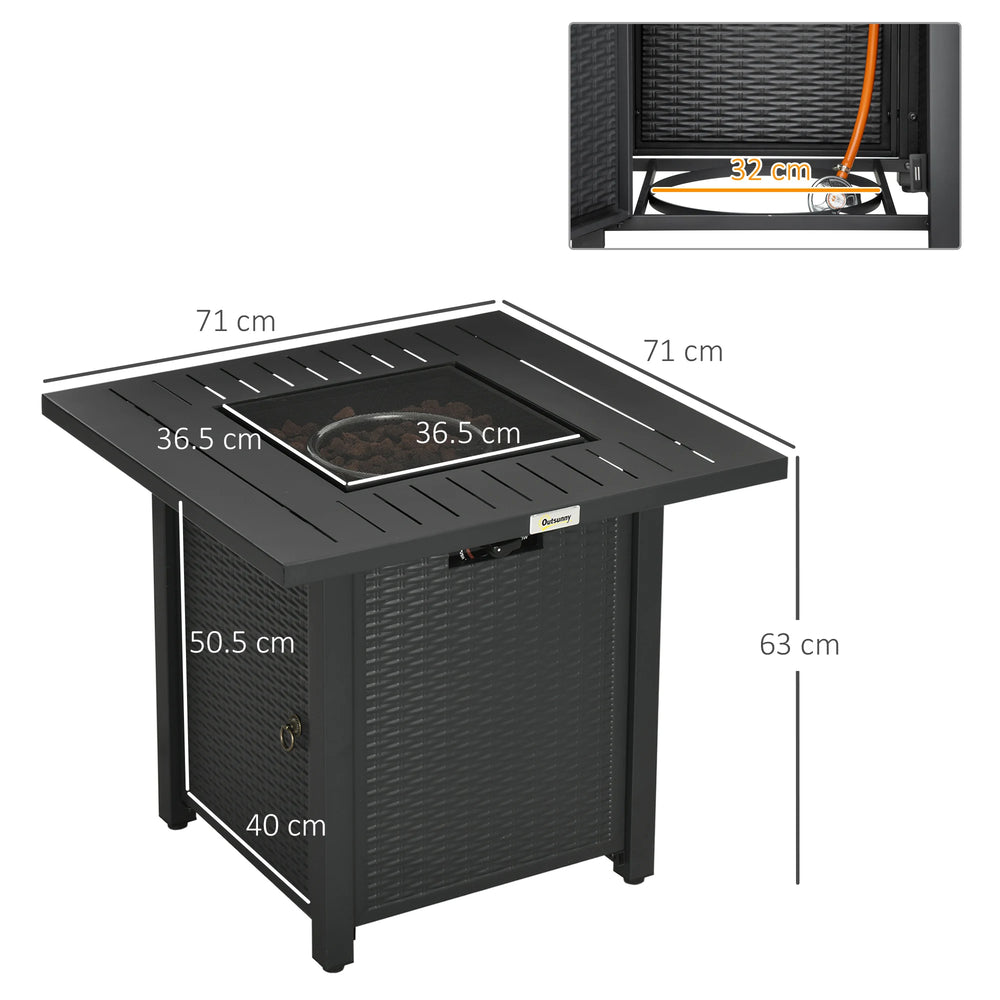 Outsunny Rattan-style Propane Gas Fire Pit Table with 40,000 BTU Burner, Square Smokeless Firepit Patio Heater with Thermocouple, Lava Rocks, Waterproof Cover, Spark Guard and Lid, Black