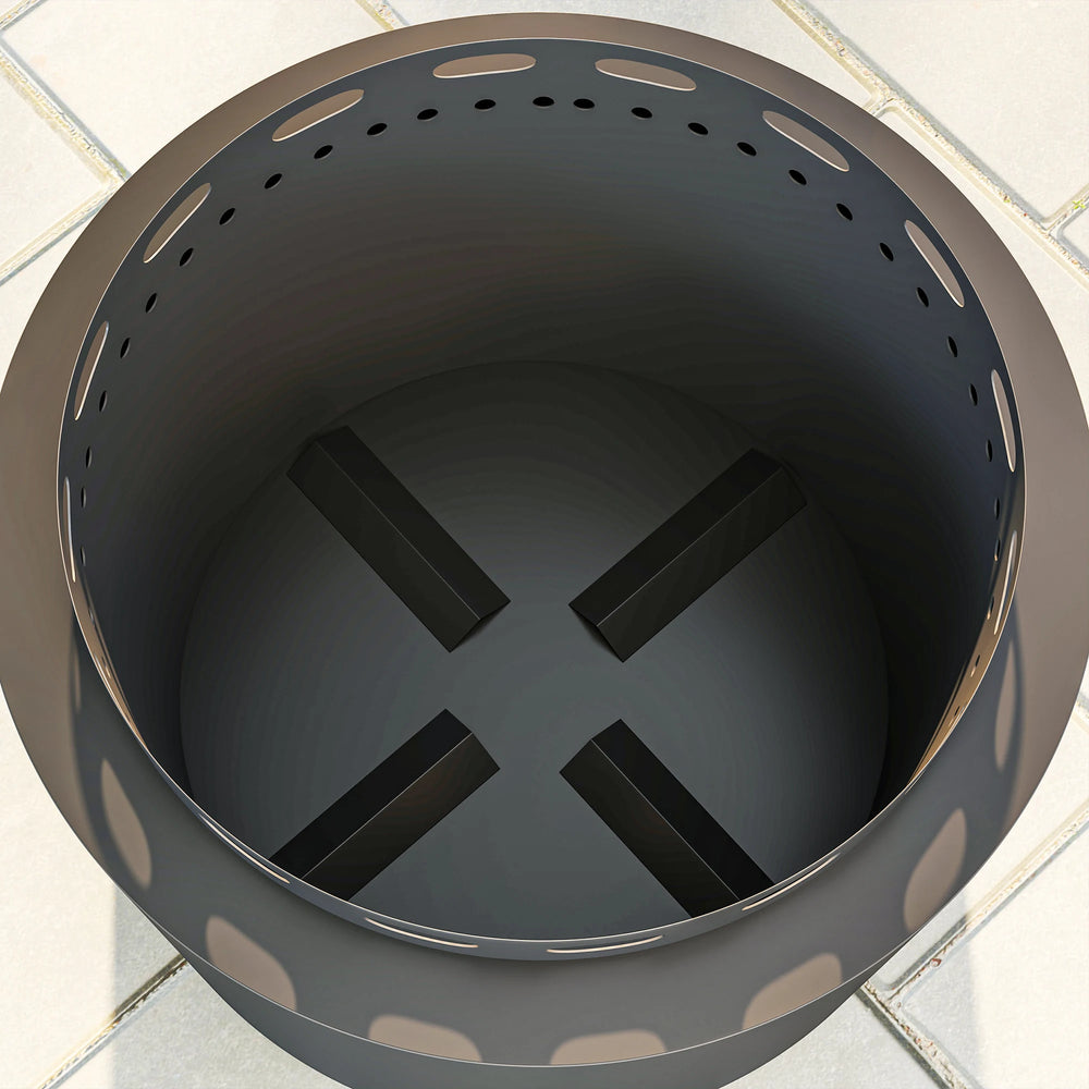- Smokeless two-part combustion system: Oxygen travels through the bottom vent holes, as warm oxygen channels between the walls - fire burns strong. Also means fuel burns down to ash in this fire pit - no smoke.