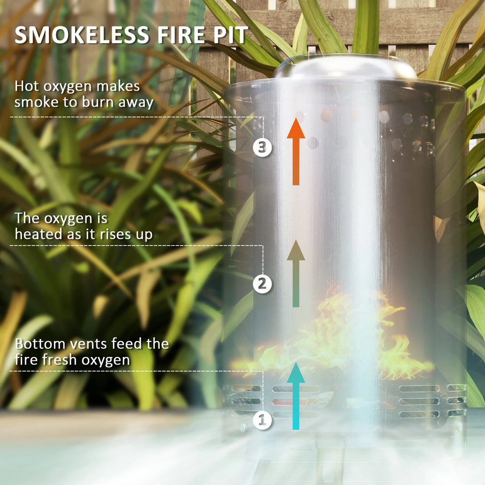 Sleek, stylish and super helpful: say hello to this modern Outsunny outdoor fire pit. Made from powder-coated stainless steel so it's tough and high heat resistant, it's crafted into a smooth cylinder design. It has a smokeless secondary combustion system: oxygen enters from below and channels between the walls for a strong and powerful burn, whilst burning the fuel down to ash for a smokeless experience - enjoy the heat like never before!