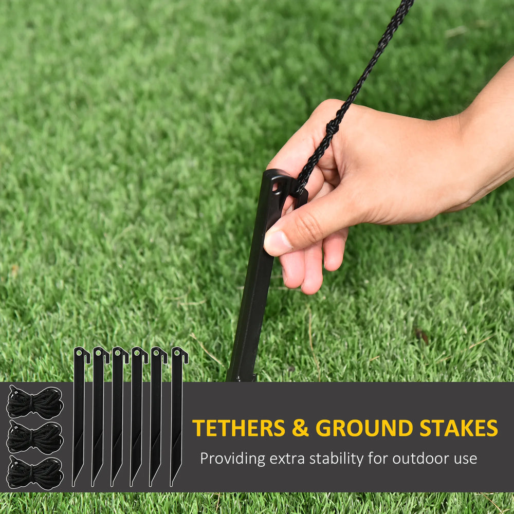 - INCLUDED ACCESSORIES: Built-in air blower, 3(m) power cable, three guy ropes and six ground stakes to keep it attached in the ground.