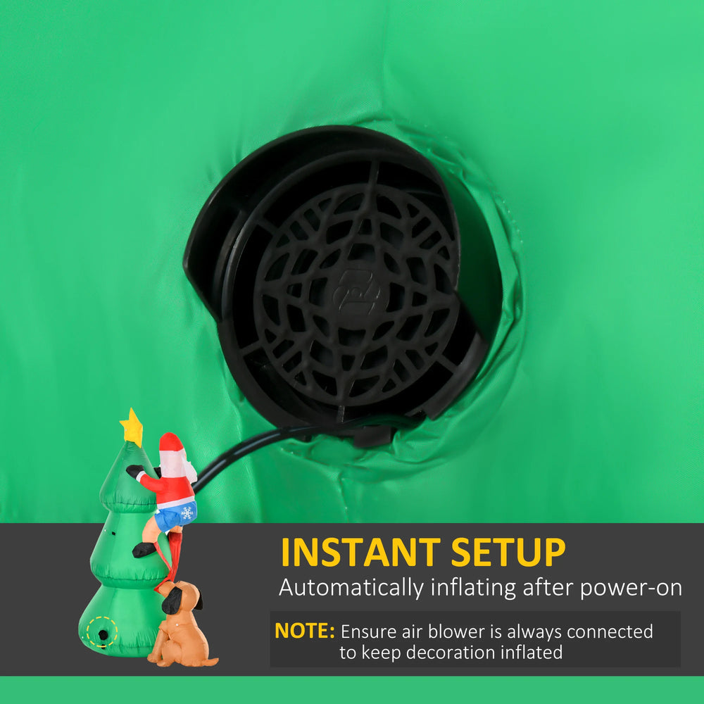 HOMCOM 6ft Inflatable Christmas Tree, LED Lighted with Santa Claus Dog for Home Indoor Outdoor Garden Lawn Decoration Party Prop
