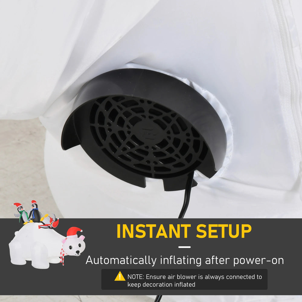 Create the ultimate festive Christmas display with this inflatable polar bear from HOMCOM. It's made from weather-resistant polyester, which is IP44 rated - meaning it's suitable for outdoor use. The design is formed of three penguins sitting on a smiling polar bear, all dressed in scarves and seasonal hats. Say goodbye to displays that are a hassle to set up. This yard decoration automatically inflates for easy set up. Bring holiday cheer to your neighborhood with this light up.