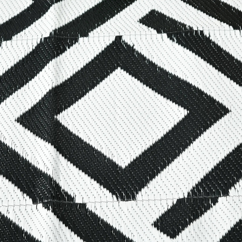 Camp on carpet with Outsunny. This porch rug is designed to handle dirt. Outdoor-ready, our rug really cleans up fast; sweep it, spray it, wipe it, or wave it; its powerful polypropylene fibers stay dry and don't saturate. Keep a plastic outdoor rug in the camper, RV, or car; it's excellent for camping, beach trips, patio picnics, or anywhere outside. The colour is reversible, meaning you can flip our plastic rug over to have a fresh side or a fresh style. Upholster the outdoors with Outsunny.