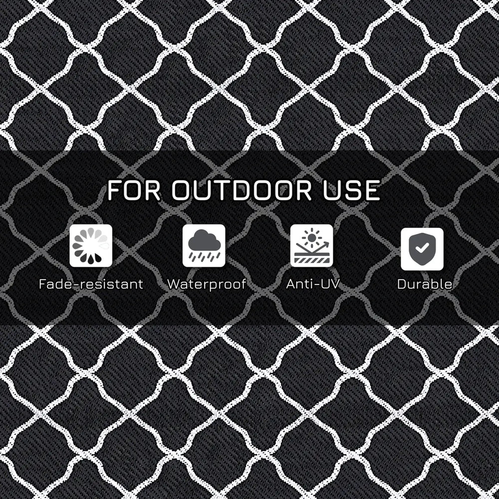 Camp on carpet with Outsunny. This porch rug is designed to handle dirt. Outdoor-ready, our rug really cleans up fast; sweep it, spray it, wipe it, or wave it; its powerful polypropylene fibers stay dry and don't saturate. Keep a plastic outdoor rug in the camper, RV, or car; it's excellent for camping, beach trips, patio picnics, or anywhere outside. The colour is reversible, meaning you can flip our plastic rug over to have a fresh side or a fresh style. Upholster the outdoors with Outsunny.