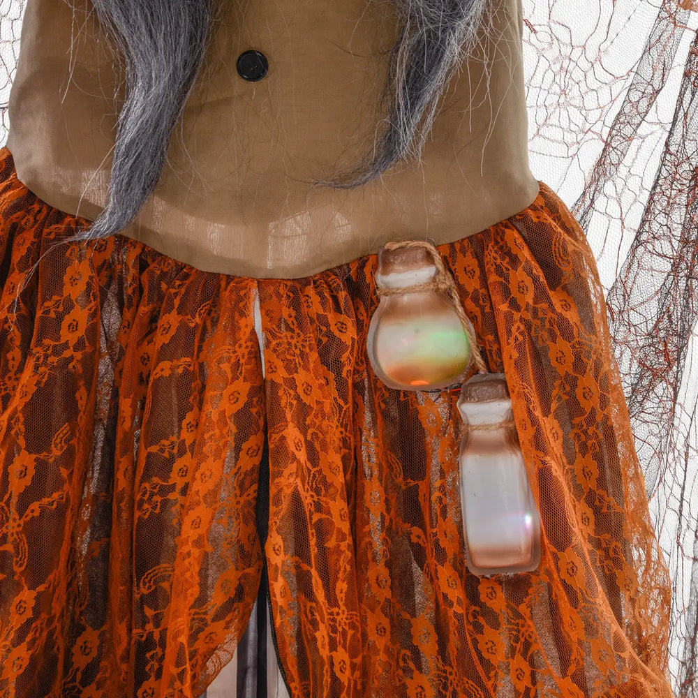 - Creepy design: Immerse yourself in a spine-chilling ambiance with this animated Halloween decoration featuring a witch holding a luminous potion and bendable arms a great addition to your haunted house