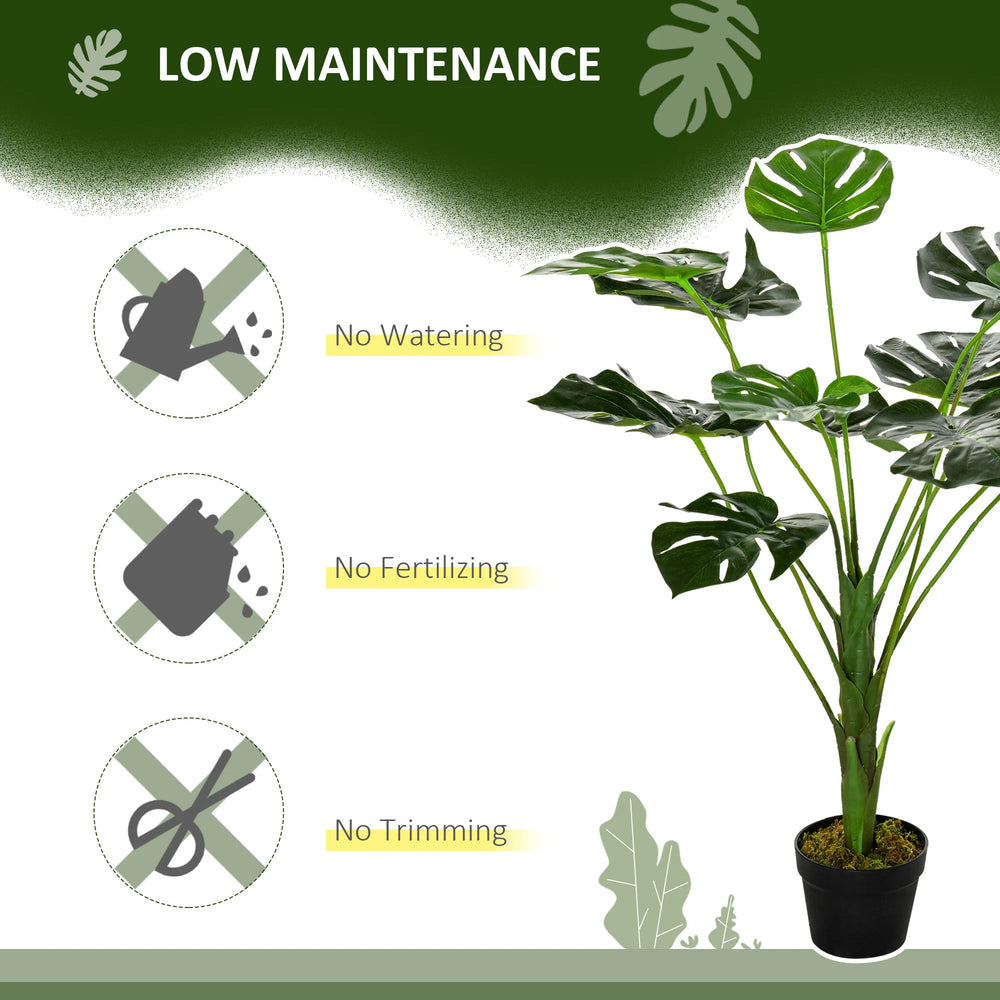HOMCOM 2 Pack Decorative Artificial Monstera Plants in Pot Fake Plants for Home Indoor Outdoor Decor, 85cm, Green