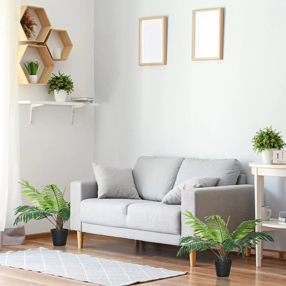Outsunny 2 Pack 60cm Artificial Palm Tree Decorative Plant with Nursery Pot, Fake Tropical Tree for Indoor Outdoor Dcor