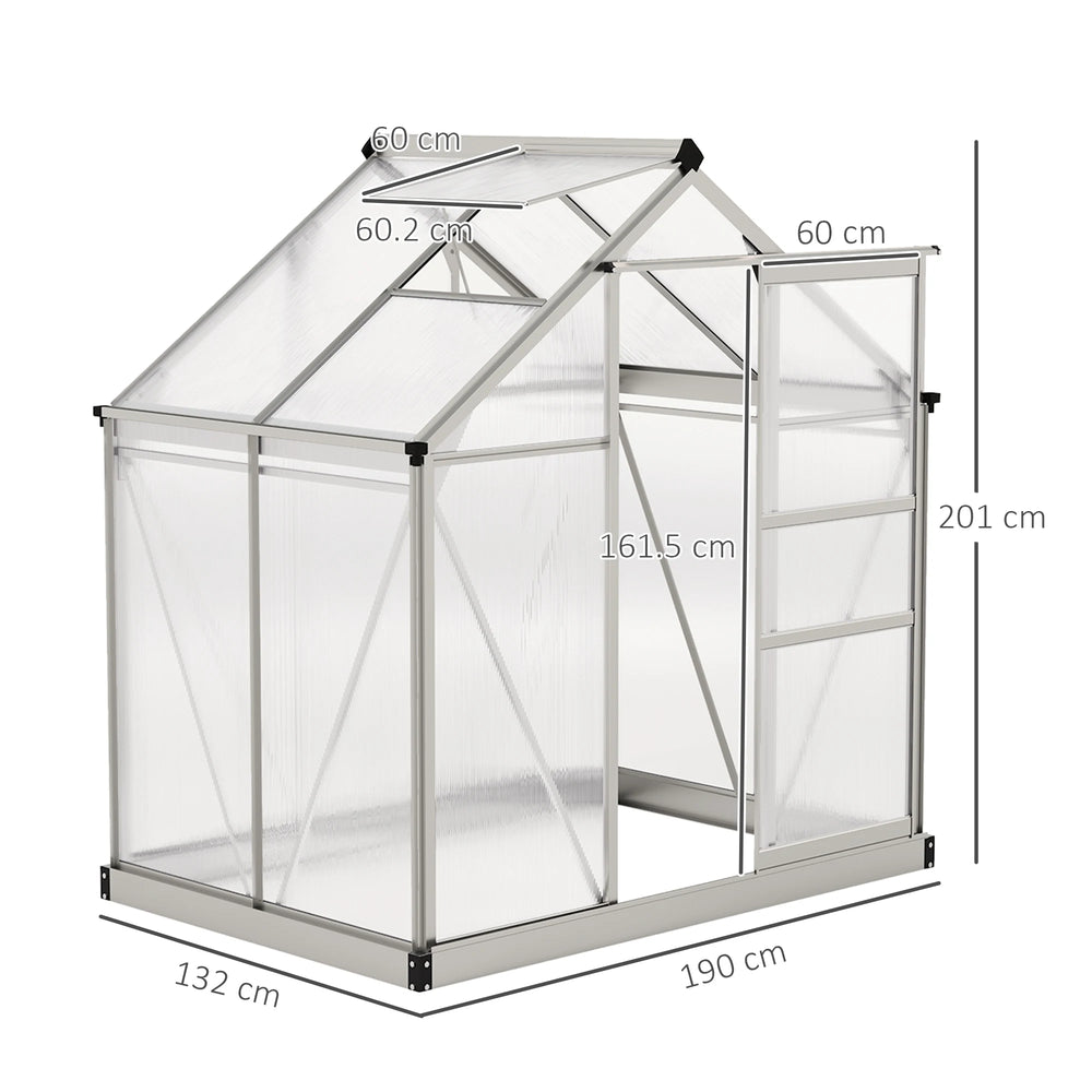 Outsunny Polycarbonate Greenhouse, Large Walk-In Green House with Slide Door and Window, Aluminium Frame, 6x4ft, Silver Tone