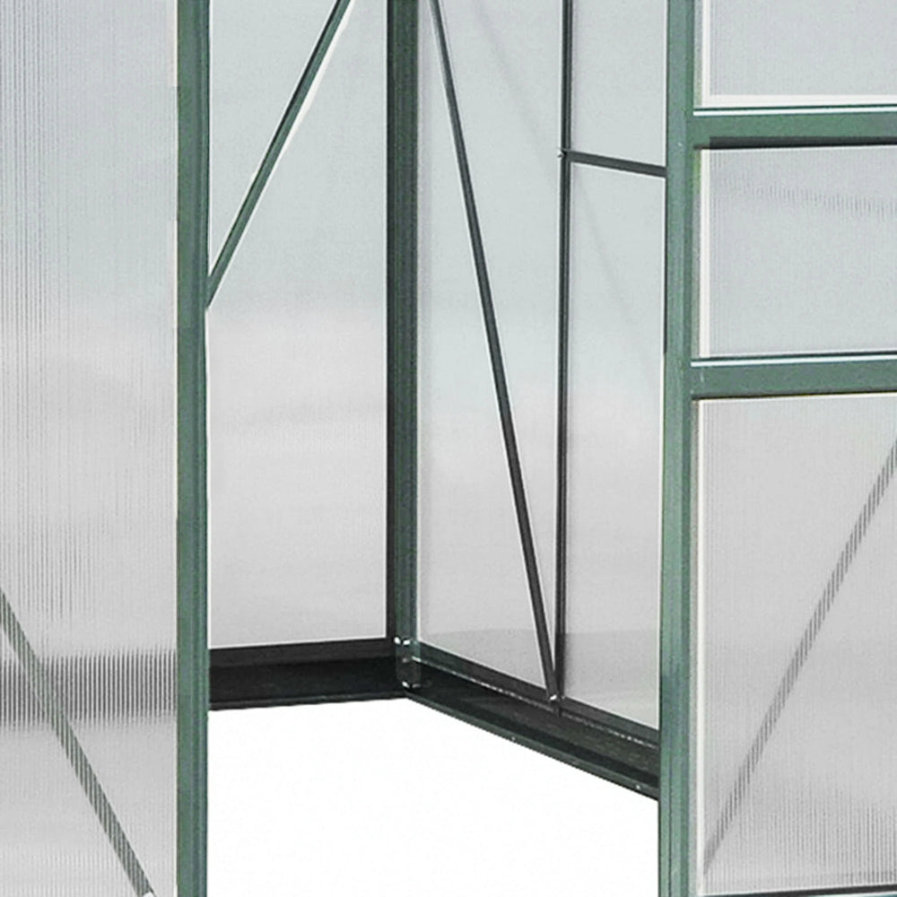 Outsunny 6 x 8ft Polycarbonate Greenhouse, Large Walk-In Green House with Slide Door and Window, Garden Plants Grow House with Aluminium Frame and Foundation, Dark Green