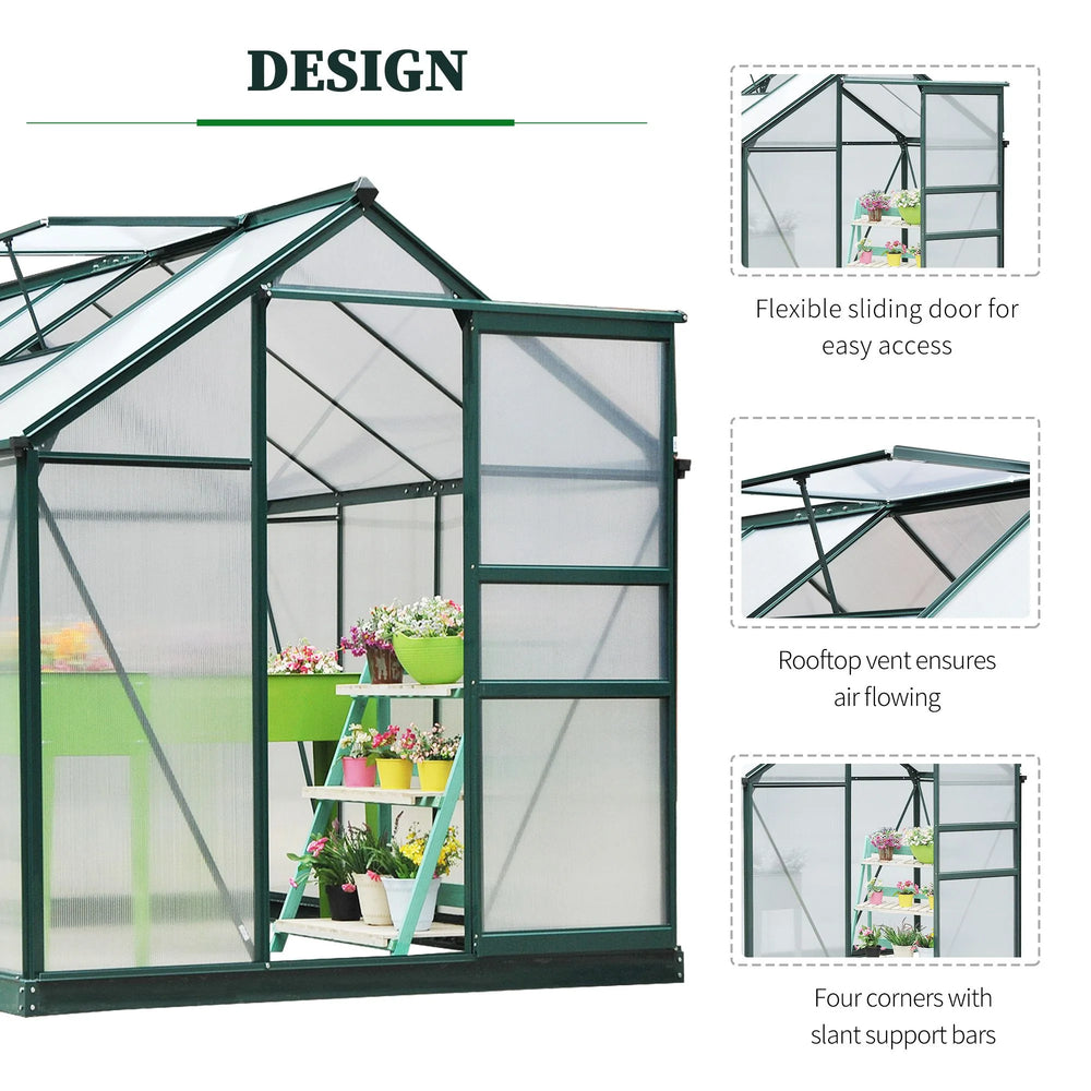 Outsunny 6 x 8ft Polycarbonate Greenhouse, Large Walk-In Green House with Slide Door and Window, Garden Plants Grow House with Aluminium Frame and Foundation, Dark Green is backordered and will ship as soon as it is back in stock.