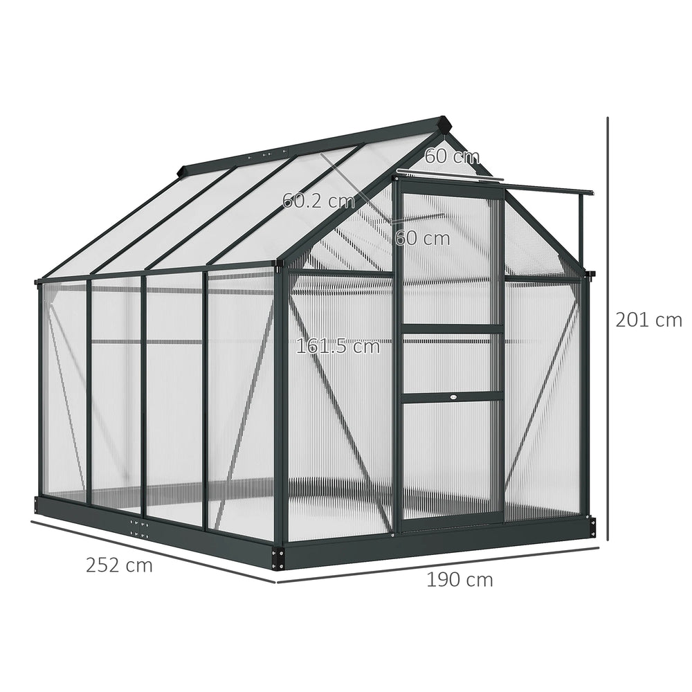 Outsunny 6 x 8ft Polycarbonate Greenhouse, Large Walk-In Green House with Slide Door and Window, Garden Plants Grow House with Aluminium Frame and Foundation, Grey is backordered and will ship as soon as it is back in stock.