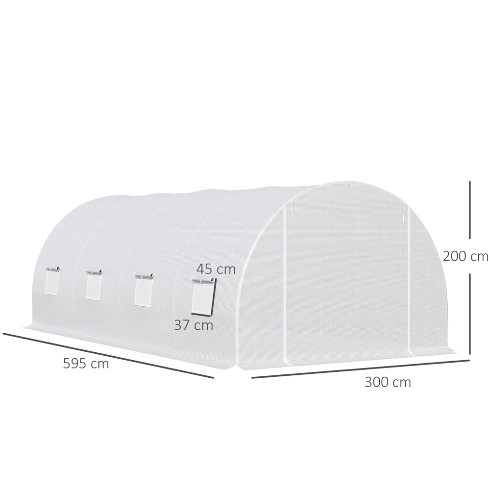 Outsunny 6 x 3 x 2 m Polytunnel Greenhouse, Walk in Polytunnel Tent with Metal Frame, Zippered Door and 8 Windows for Garden and Backyard, White