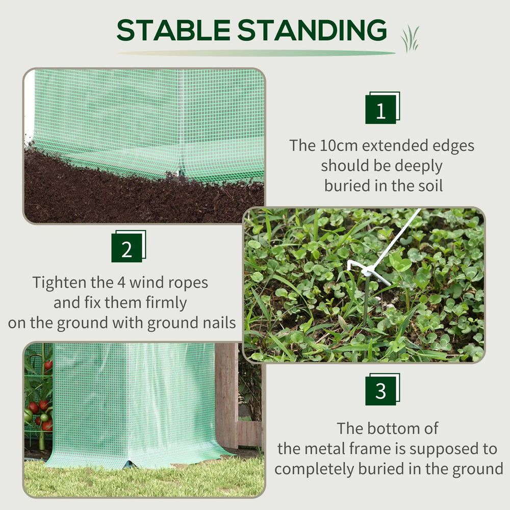 - STEEL FRAME: A durable core structure, greenhouse stands steady on the ground - four guy ropes and four ground pegs included for extra support.