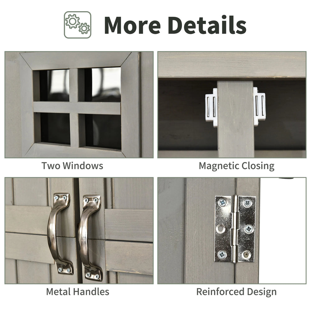 Outsunny Wooden Garden Shed with Two Windows, Tool Storage Cabinet, Outdoor Double Door Organizer 127.5L x 50W x 164H cm, Grey