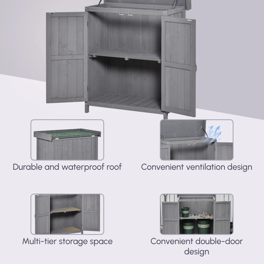 Outsunny Small Shed, Wooden Garden Shed with Openable Hinged Roof and Removable Shelf, Outdoor Tool Storage Cabinet Chest with Double Doors, 74 x 43 x 88 cm, Grey