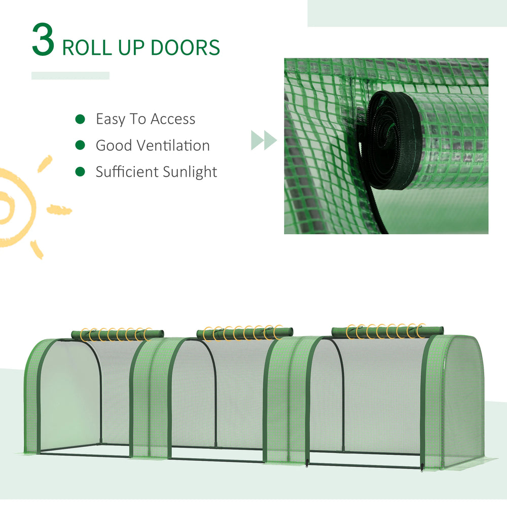 Grow plants, vegetables, fruit and flowers safely all year round with this long tunnel greenhouse from Outsunny. With a powder coated steel frame for strength and durability, it features a durable cover, helping to protect plants from cold, whilst providing plenty of sunlight for them to nourish and grow. The cover also features zipped doors, providing you easy access and ventilation throughout. Lightweight enough to be moved around, this greenhouse is perfect for gardens, patios, balconies and allotments.